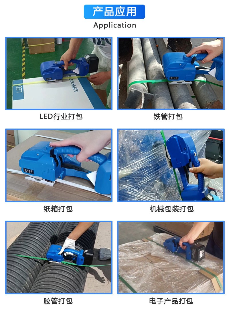 - 可以應用于不同形狀和大小的物體打包。無論是小型的文件袋、中型的電器包裝箱還是大型的設備箱,手持電動打包機都能根據物體的特點進行靈活打包,通過選擇合適的打包方式(如水平、垂直或交叉打包),確保打包的牢固性。