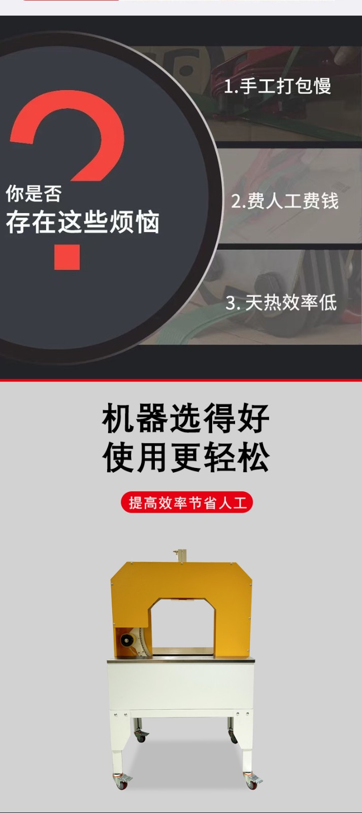 - 適用場景:適用于中等規(guī)模的生產(chǎn)企業(yè),在一些生產(chǎn)環(huán)節(jié)中,物體的放置和取下仍需要人工操作,但膠帶的供給和切斷等過程由設(shè)備自動完成,能夠在一定程度上提高包裝效率,同時保持一定的靈活性。