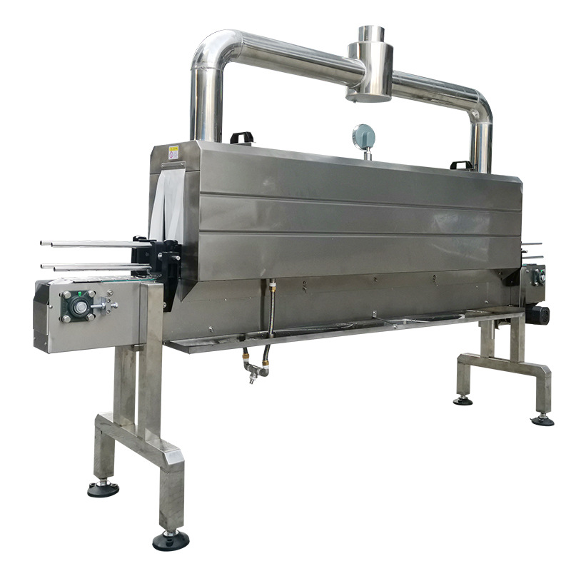 其工作原理是利用蒸汽的高溫和熱能,對覆蓋在產品外的收縮膜進行加熱。當收縮膜受熱達到一定溫度時,其分子結構發生變化,從而產生收縮現象,緊緊包裹住產品。