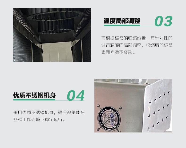 - 控制系統:用于設定和調節加熱溫度、輸送速度等參數,以滿足不同產品的熱收縮需求。
