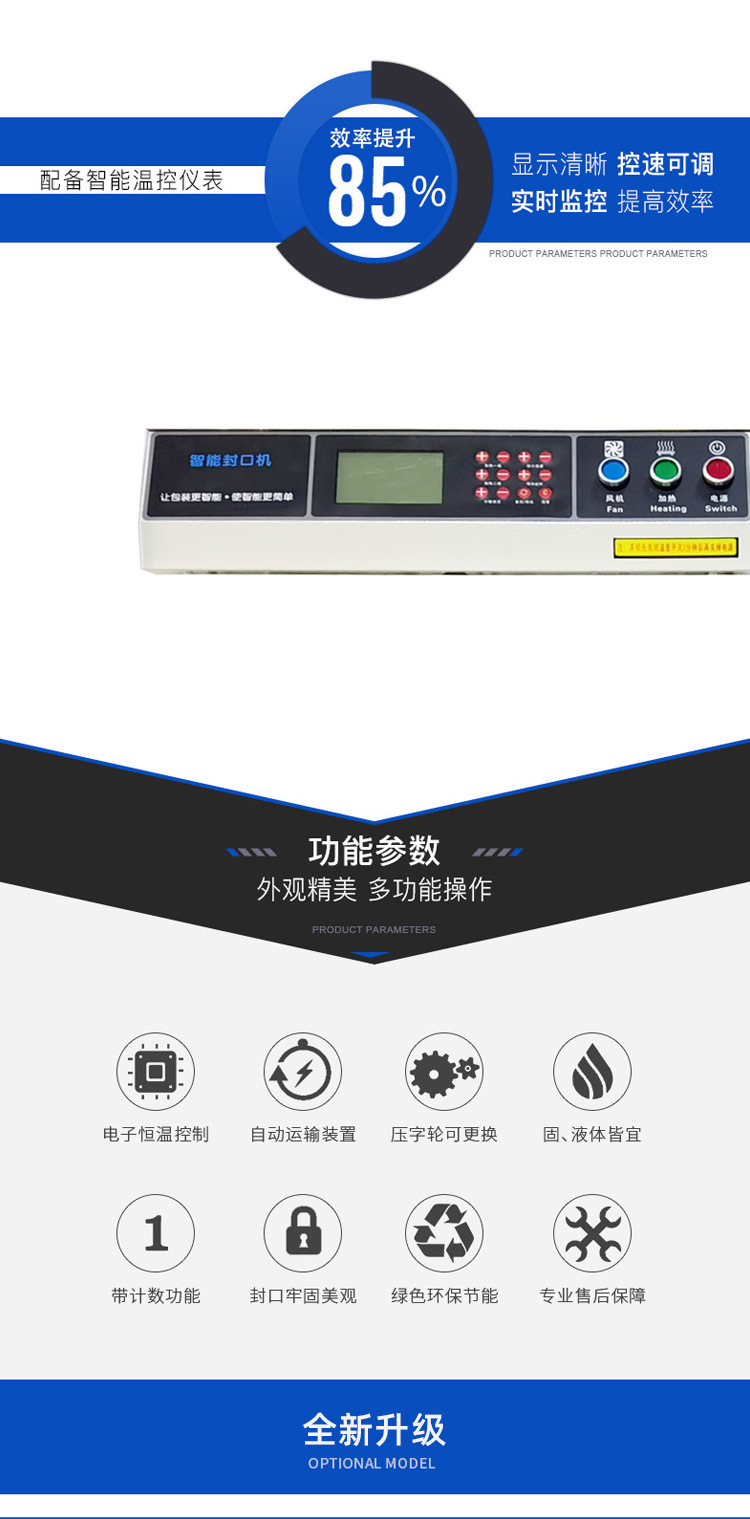 - 節(jié)省人力和時(shí)間成本:它的自動化程度較高,在連續(xù)封口過程中,只需要少量的操作人員進(jìn)行監(jiān)控和簡單的操作,如添加包裝材料、調(diào)整參數(shù)等。相比手工封口或者半自動化的封口方式,大大節(jié)省了人力成本,并且能夠在更短的時(shí)間內(nèi)完成大量的封口任務(wù),提高了生產(chǎn)效率,降低了生產(chǎn)成本。
