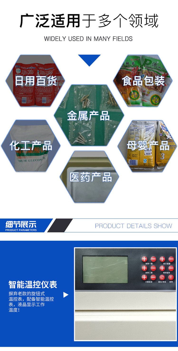 - 食品行業(yè)應(yīng)用廣泛:在食品包裝領(lǐng)域,如面包、餅干、方便面等產(chǎn)品的包裝,大型立式連續(xù)式封口機(jī)發(fā)揮著重要作用。以餅干包裝為例,大量的餅干被裝入包裝袋后,通過封口機(jī)進(jìn)行封口,能夠快速、高效地完成包裝過程,并且保證封口質(zhì)量,防止餅干受潮、變質(zhì)。