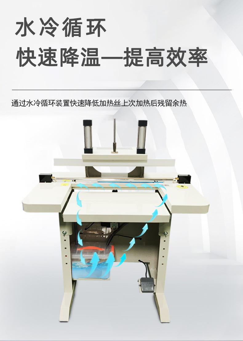 水冷封口機主要是通過加熱封口元件(如加熱絲或加熱塊),使包裝材料的封口部位受熱熔化,然后在一定的壓力下融合在一起,達到封口的目的。而水冷系統則是在封口過程中或之后發揮作用,用于冷卻封口部位,使封口快速凝固,增強封口的強度和密封性。