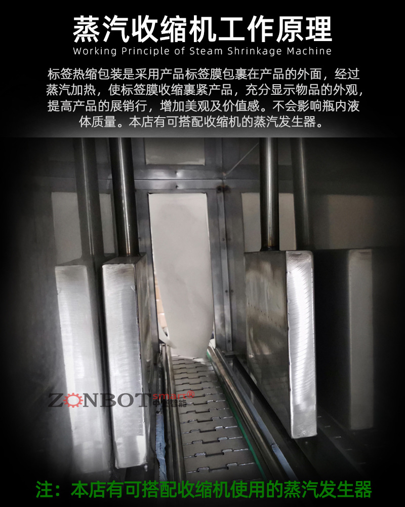 它主要是通過將蒸汽噴射到包裝材料表面。包裝材料(通常是熱收縮薄膜)在受熱后,分子鏈段會運(yùn)動加劇,使薄膜產(chǎn)生收縮現(xiàn)象。這種收縮能夠緊密地貼合在被包裝產(chǎn)品的表面,從而達(dá)到保護(hù)產(chǎn)品、方便運(yùn)輸和展示的目的。例如,當(dāng)對瓶裝飲料進(jìn)行包裝時,蒸汽收縮機(jī)產(chǎn)生的蒸汽讓薄膜緊緊包裹住瓶身,形成一層緊貼產(chǎn)品的透明包裝。