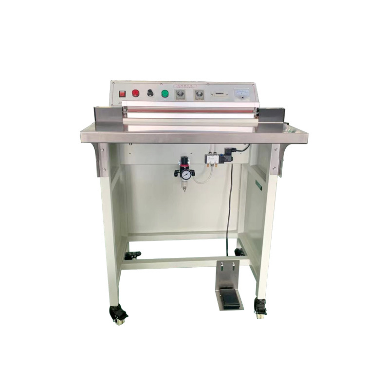 以常見的腳踏封口機為例,封口長度可達 450mm,封口寬度為 5MM,脈沖功率為 1.4KW,外形尺寸為 500×400×900mm 。
