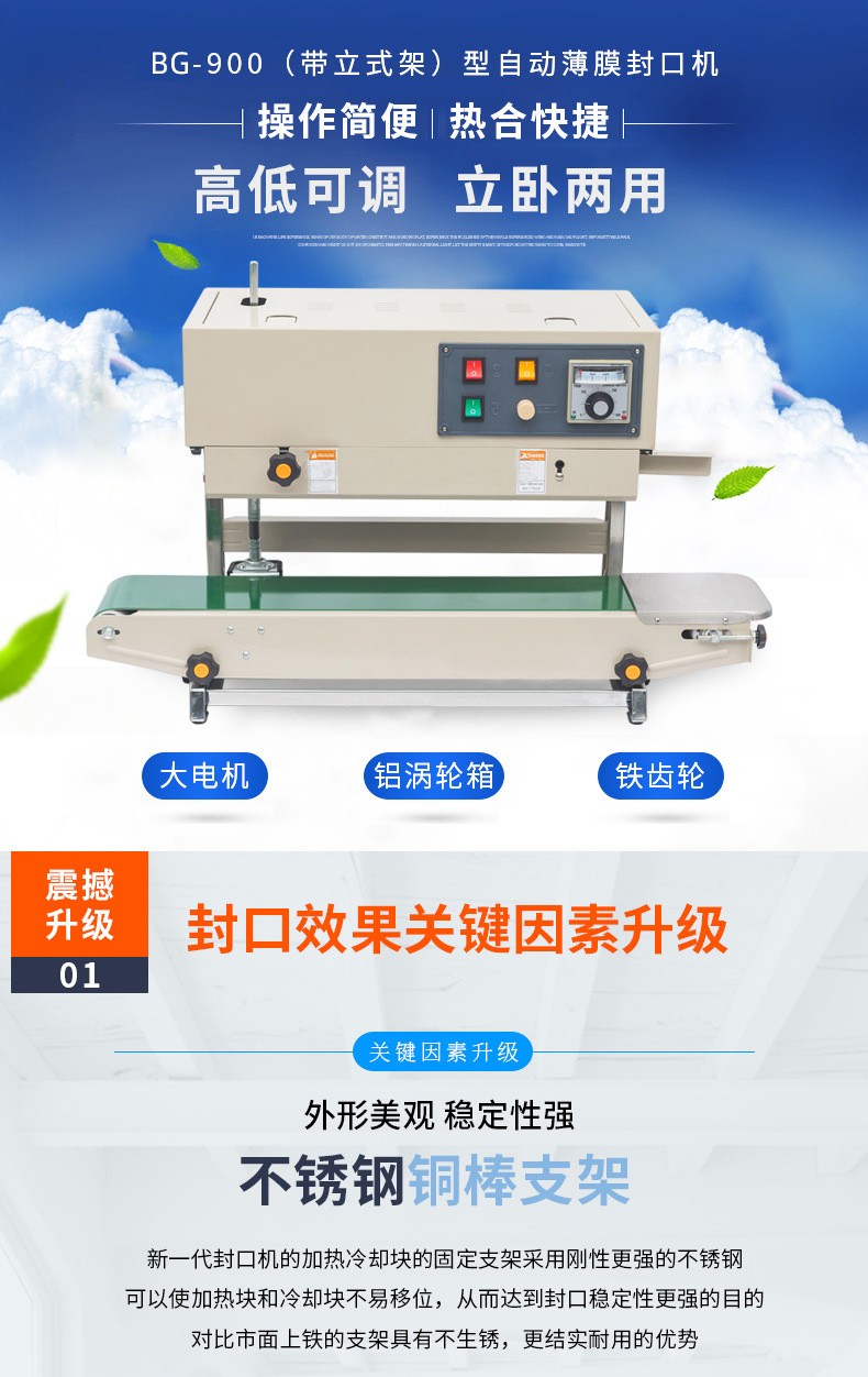 立臥兩用封口機確實具有可根據不同包裝需求和工作場景選擇立式或臥式使用的特點,以下為你詳細闡述其在不同場景下的應用優勢: