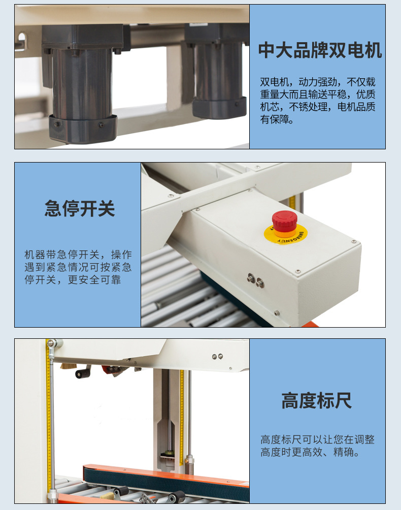 是的,全自動封箱機可自動完成紙箱輸送、定位、折蓋、封箱等全流程操作,以下是其各環節的簡要介紹: