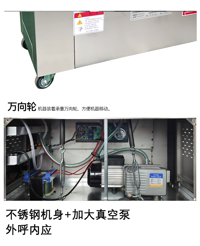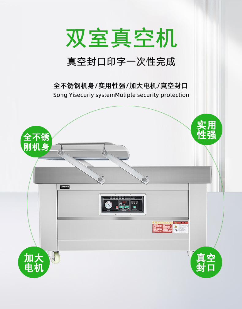 反觀雙室真空包裝機(jī),設(shè)有左右兩個真空室。當(dāng)其中一個真空室處于抽真空、熱封等包裝作業(yè)階段時,操作人員可同步在另一個真空室進(jìn)行產(chǎn)品放置與整理。待一側(cè)完成包裝流程,上蓋切換至另一側(cè),之前準(zhǔn)備好的真空室立即開始工作,實現(xiàn)無縫銜接。以同樣包裝小型食品為例,雙室真空包裝機(jī)能夠在 15 秒左右完成一次包裝,效率大幅提升。這種交替式工作模式,避免了單室機(jī)型頻繁開關(guān)蓋及產(chǎn)品裝卸所浪費的時間,顯著提高了單位時間內(nèi)的包裝產(chǎn)量,為企業(yè)擴(kuò)大生產(chǎn)規(guī)模、提升市場競爭力提供了有力支撐