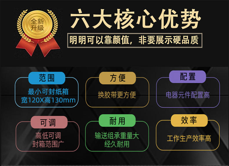 這一自動化連續作業模式,極大程度減少了人工操作的時間與勞動強度。以往,人工封箱時,工人需手動將紙箱蓋子逐一折合,再小心翼翼地粘貼膠帶,每完成一個紙箱的封箱,都需耗費一定時間,且頻繁重復性動作易使工人疲憊。而在打包環節,人工穿帶、拉緊、固定打包帶,不僅操作繁瑣,速度也極為有限。如今,有了全自動封箱打包一體機,工人只需將空紙箱放置在起始輸送帶上,后續工序均由設備自動完成。據實際數據統計,相較于傳統純人工包裝,使用該一體機后,包裝效率可提升數倍甚至數十倍。例如,在某電商倉庫,以往人工包裝每小時僅能完成幾十件紙箱的封箱打包,而引入全自動封箱打包一體機后,每小時可輕松處理數百件,顯著提升了整體包裝效率,使企業在單位時間內能夠完成更多訂單的包裝與發貨任務,極大增強了企業的市場競爭力