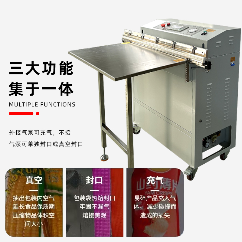 - 是否需要充氣功能:如果產(chǎn)品需要充入氮?dú)狻⒍趸嫉缺Wo(hù)氣,以保鮮保味、防沖擊或延長(zhǎng)存儲(chǔ)期等,則需要選擇帶有充氣功能的氣動(dòng)外抽真空包裝機(jī)。