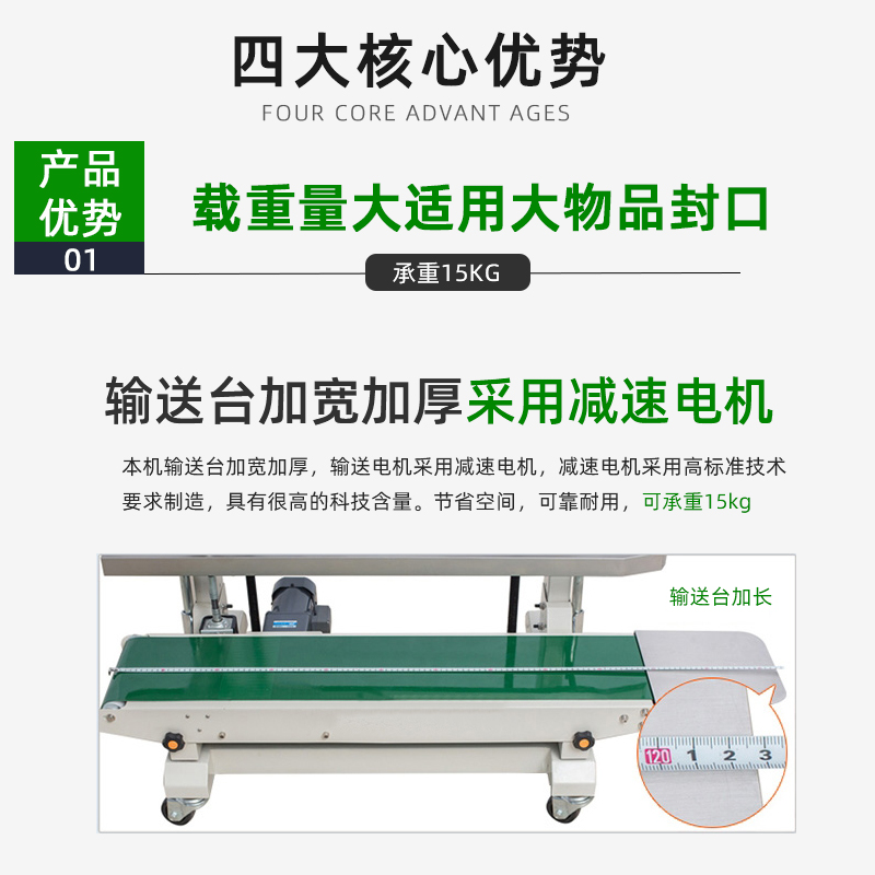 - 測量實際速度:開啟封口機,讓輸送帶正常運行。使用測速儀測量輸送帶的實際速度。如果是通過測量距離來計算速度,需要先標記出輸送帶某一點的初始位置,然后啟動秒表,記錄在一定時間(如 1 分鐘)內該點移動的距離,通過計算得出輸送帶的速度(速度 = 距離 ÷ 時間)。
