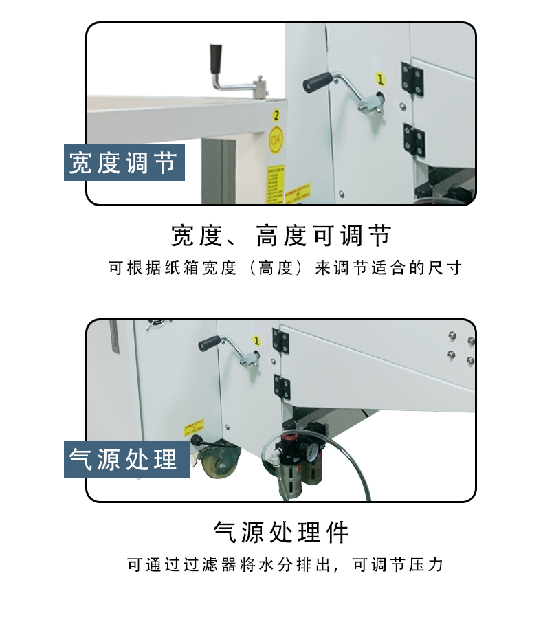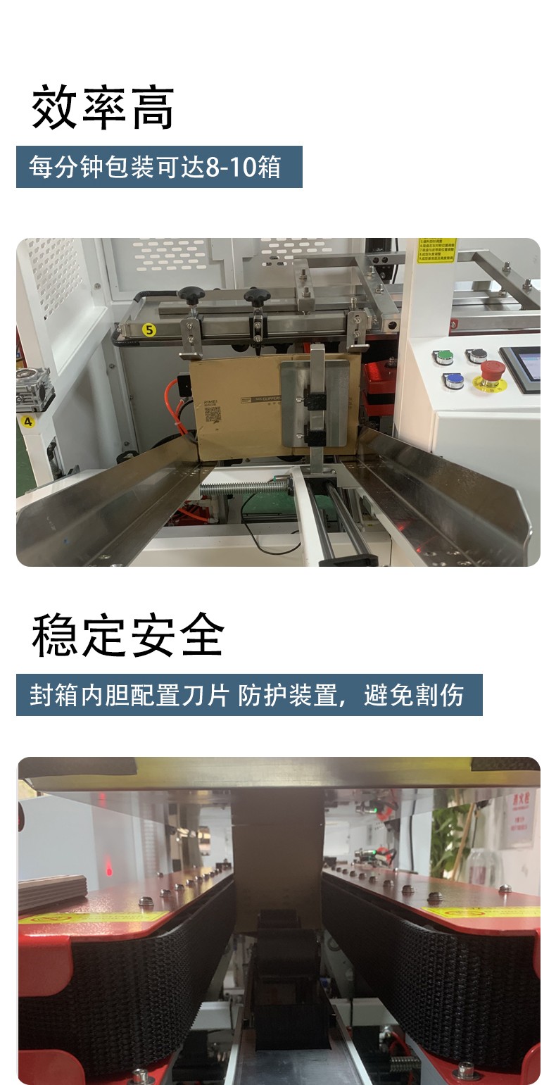 - 適用范圍廣:可適用于各種材質和尺寸的紙箱,無論是紙質較硬的重型紙箱,還是普通的輕型紙箱,都能進行良好的封箱操作。對于不同規格的紙箱,只需對機器進行簡單的調整即可適應。