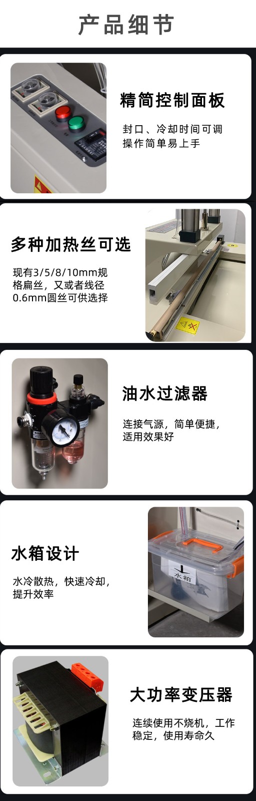 水冷封口機采用循環水冷散熱系統,能夠快速將封口過程中產生的熱量帶走,防止設備過熱,保證設備可以連續穩定工作,提高生產效率
