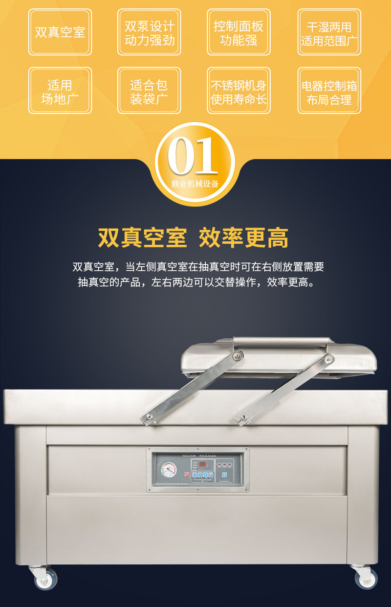 - 完成包裝:熱封完成后,真空室開始回氣,待真空室內壓力與外界平衡后,打開真空室蓋子,取出包裝好的產品;同時,在另一個真空室內進行下一輪的產品放置和包裝操作,如此循環往復。