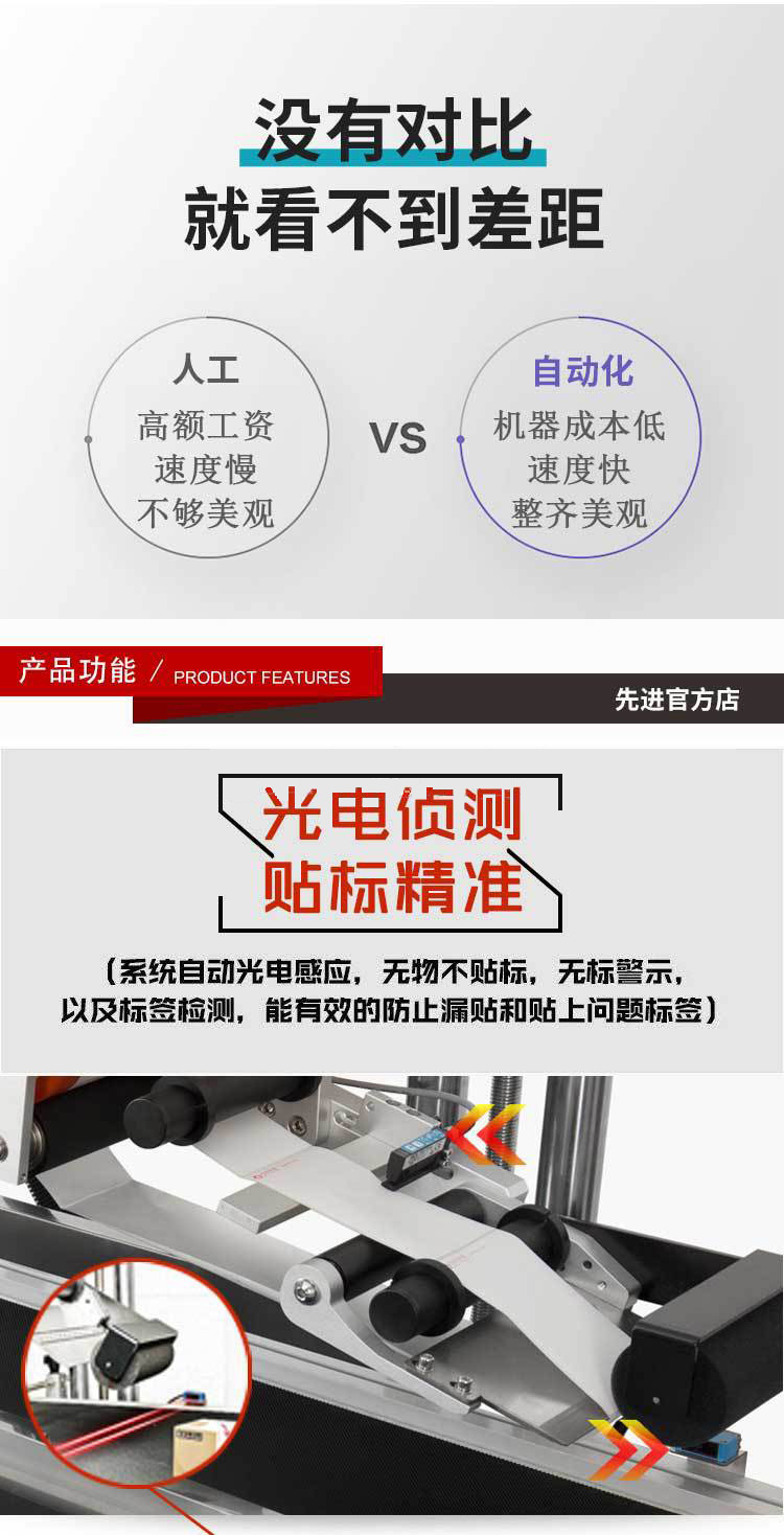 不干膠貼標機 由于該貼標機采用機電一體化的技術,選用大力矩步進電機驅動,及光電控制裝置、電源保護裝置等先進系統,因此具有啟動緩沖功能,整體靈敏度高,低速扭矩大,速度穩(wěn)定,工作電壓穩(wěn)定,抗干攏能力強等技術特性。 保證了貼標準確、穩(wěn)定、可靠、高效。