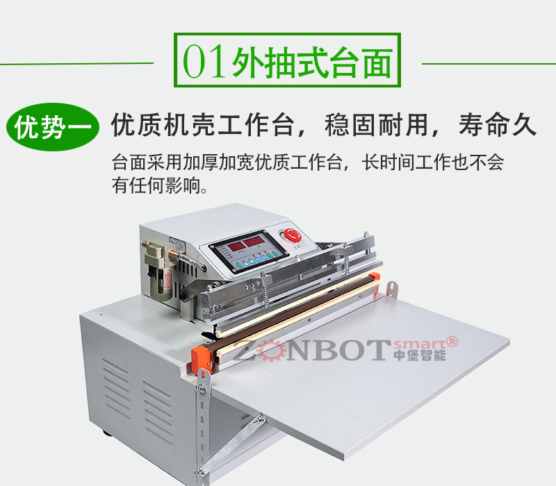 真空包裝機能夠自動抽出包裝袋內的空氣,達到預定真空度后完成封口工序。亦可再充入氮氣或其它混合氣體,然后完成封口工序。真空包裝機常被用于食品行業,因為經過真空包裝以后,食品能夠抗氧化,從而達到長期保存的目的。