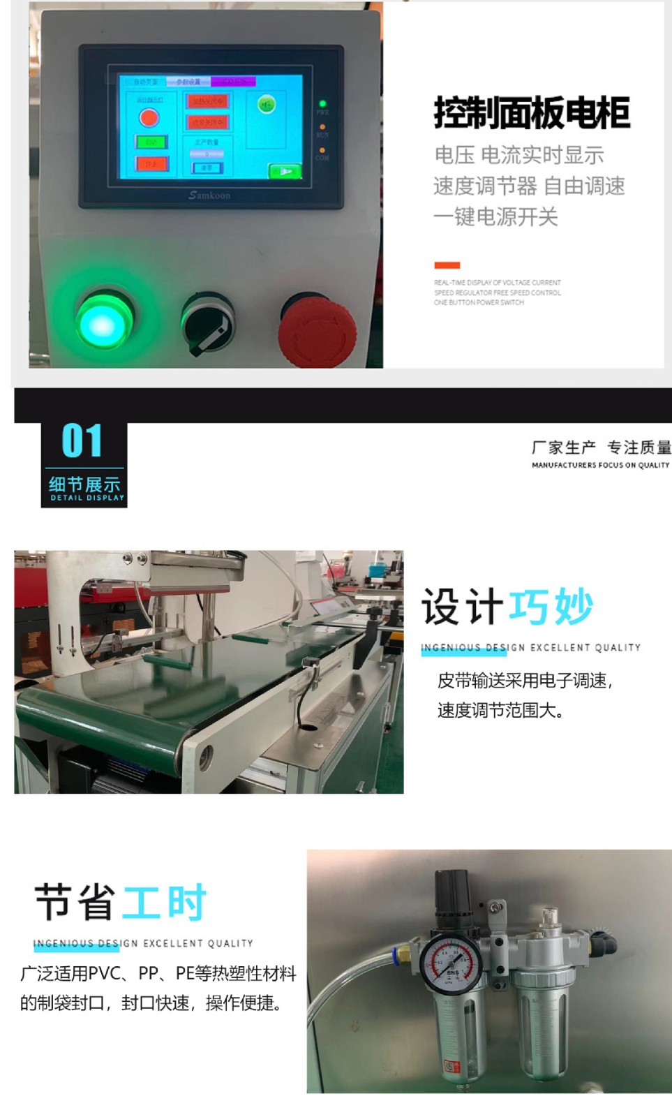 空封口機(jī)是將食品裝入包裝袋,抽出包裝袋內(nèi)的空氣,達(dá)到預(yù)定真空度后,完成封口工序。可以有以下功能:1、對袋子進(jìn)行抽氣+封口;2、直接對袋子口封口;3、對袋子進(jìn)行抽氣+充入氮?dú)饣蚱渌麣怏w+封口 封口機(jī)簡介 抽真空封口機(jī)有多種型號,有手壓式的,有立式的等多種規(guī)格