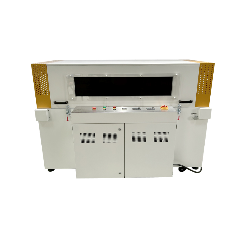 - 熱收縮階段:當產品進入熱收縮通道后,加熱系統的變頻器根據預設的參數開始工作。加熱元件逐漸升溫,溫度傳感器實時監測通道內的溫度,并將信號反饋給控制系統。變頻器根據反饋信號精準地調節加熱功率,使熱收縮通道內形成均勻的熱場。薄膜在熱空氣的作用下開始收縮,這個過程中,由于雙變頻系統對溫度和輸送速度的精確控制,薄膜能夠均勻地貼合在產品表面。例如,對于不同材質的薄膜,如 POF 薄膜和 PVC 薄膜,雙變頻收縮機可以通過調整加熱功率和輸送速度,確保薄膜都能達到理想的收縮效果。POF 薄膜可能需要相對較低的溫度和稍快的輸送速度,而 PVC 薄膜可能需要更高的溫度和較慢的輸送速度。