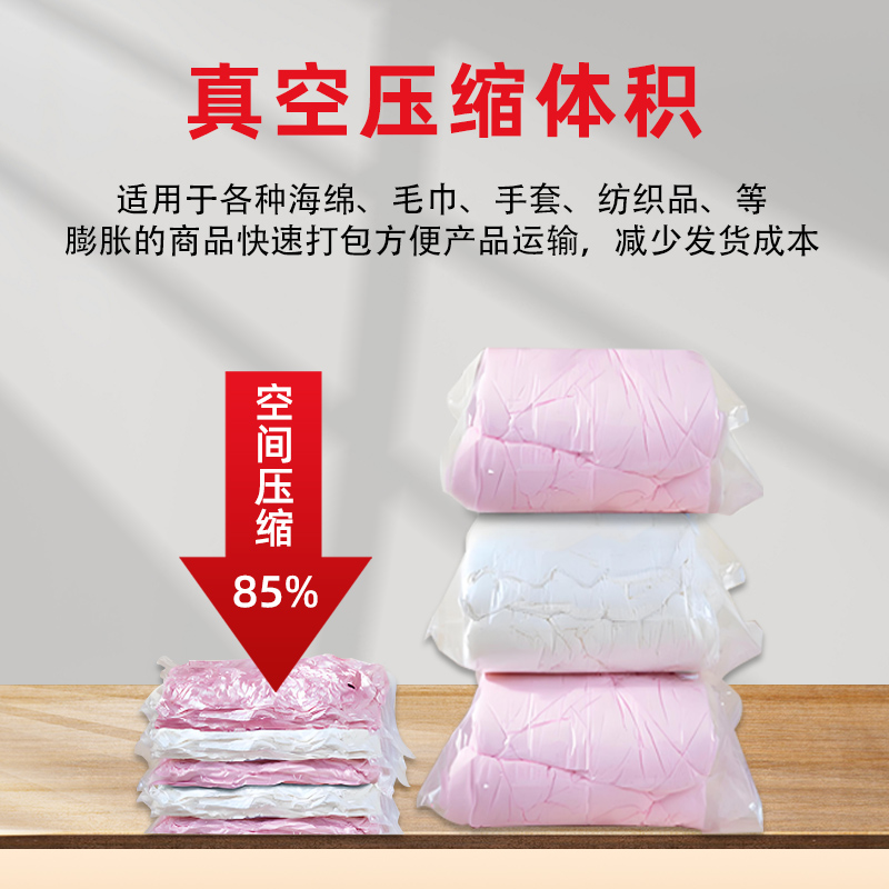 • 家居用品:用于羽絨被、棉被、枕頭、毛絨玩具等蓬松物品的收納包裝,可大大節(jié)省存儲空間,使家居環(huán)境更加整潔有序。