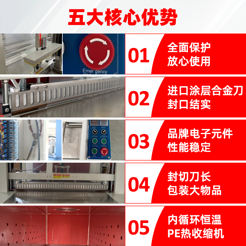 - 包裝效果好:通過精確的送膜和封切控制,以及均勻的熱收縮過程,包裝膜可以緊密貼合產品,形成美觀、牢固的袖口式包裝,提升產品的外觀品質和市場競爭力6。