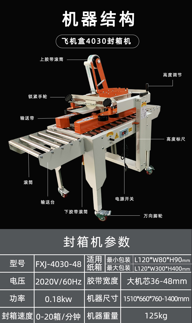 4030X全自動紙箱膠帶封箱機郵政紙箱包裝機膠帶封箱透明膠帶打包
