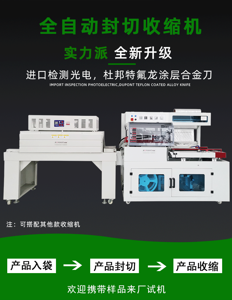 封切機是全自動無人化操作的包裝機,廣泛用于批量生產包裝的流水作業,工作效率高,自動送膜打孔,自動套膜封切,自動卷取廢料;只需手動調節導膜系統以及手動調節進料輸送平臺,適用不同寬度及高度的產品。